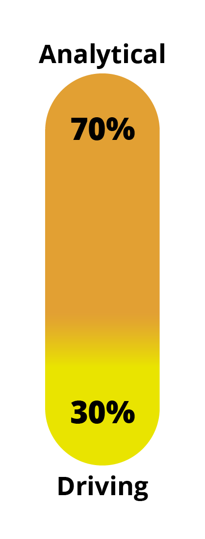 Analytical preferences tend to be more reserved and quiet. They value time to process and think thoughtfully and logically. These preferences are less likely to be spontaneous or jump into something new quickly, as they prefer a slower pace and cautious, critical approach. Driving preferences tend to be more decisive and direct. They value efficiency and action, as they are driven by results, goals, and objectives. These preferences are considered determined and are more likely to initiate control over situations.